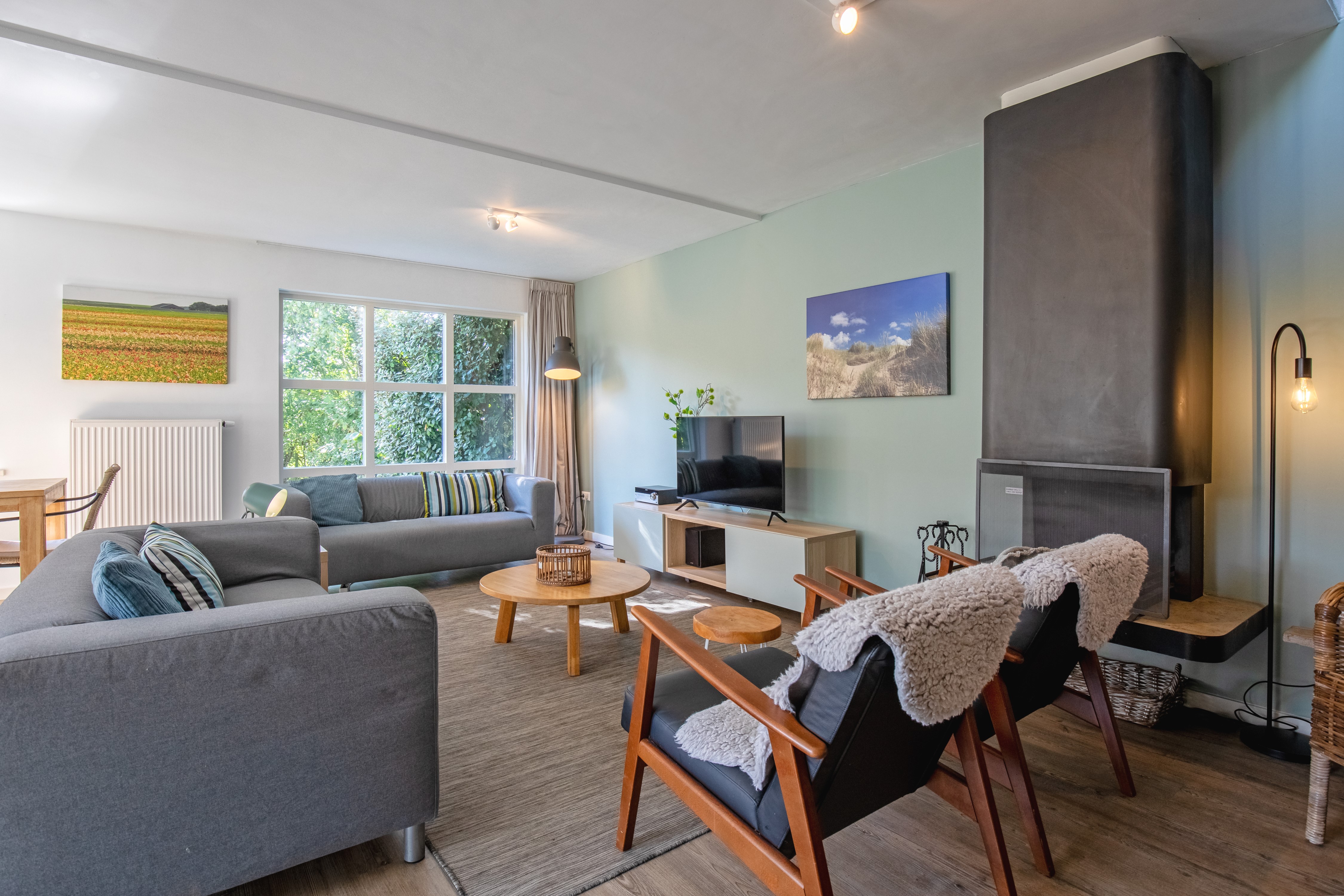 Deze geschakelde bungalow heeft een grote tuin met terras. De woonkamer biedt genoeg plaats voor het hele gezelschap en is voorzien van een zit- en eethoek, televisie en een openhaard. Er zijn 3 slaapkamers waarvan 1 op de begane grond. Er zijn twee badkamers aanwezig. De oppervlakte bedraagt ca. 90 m²