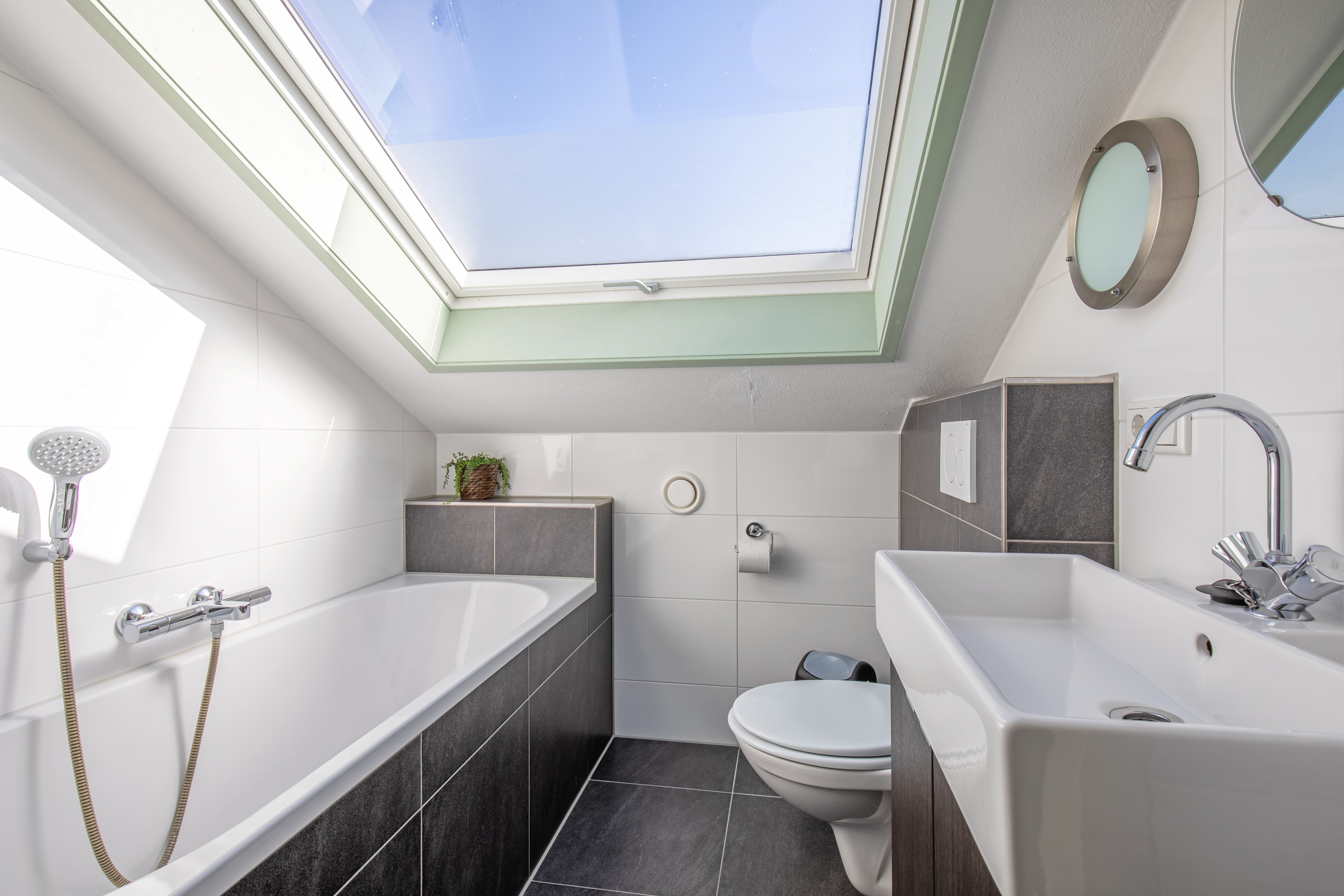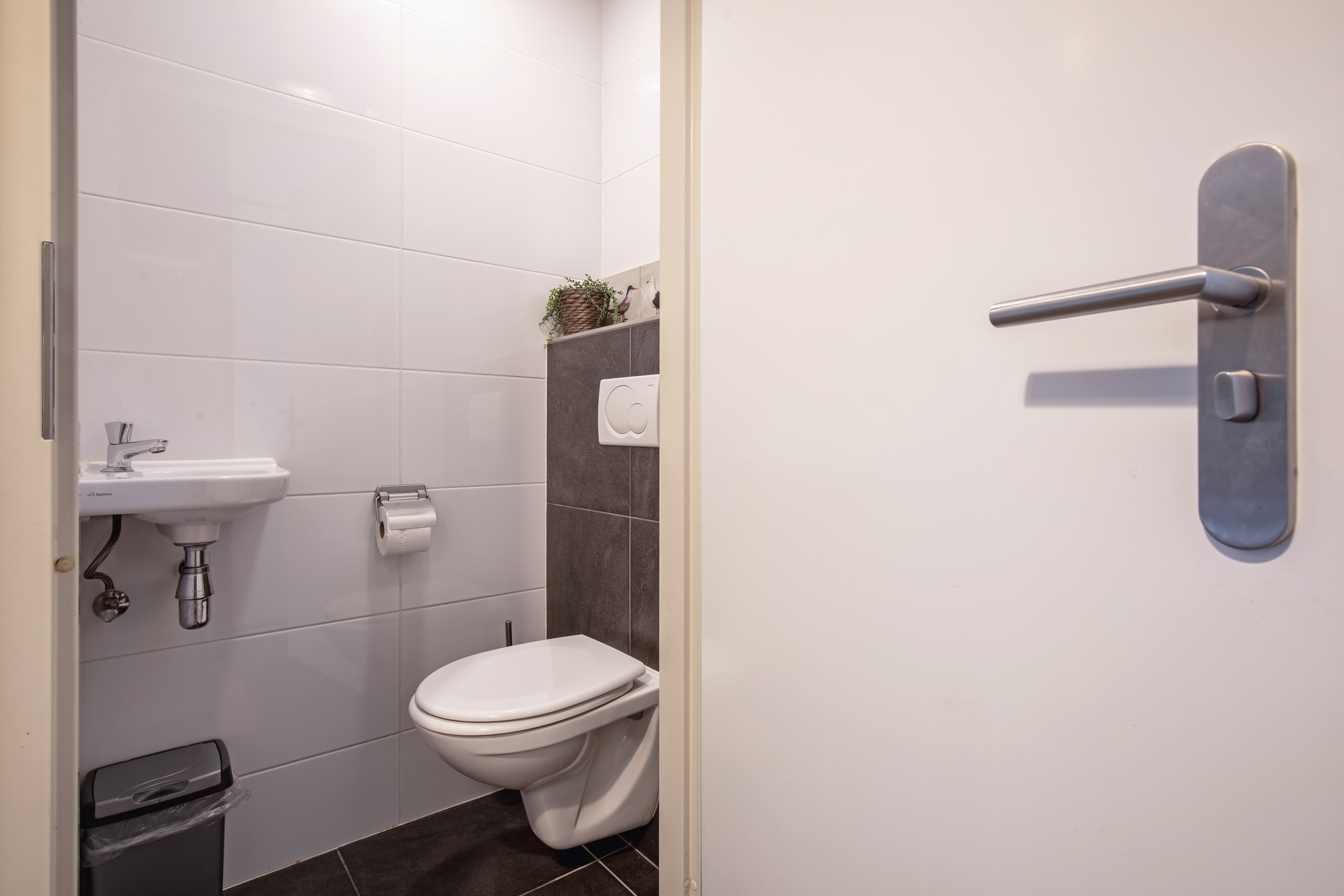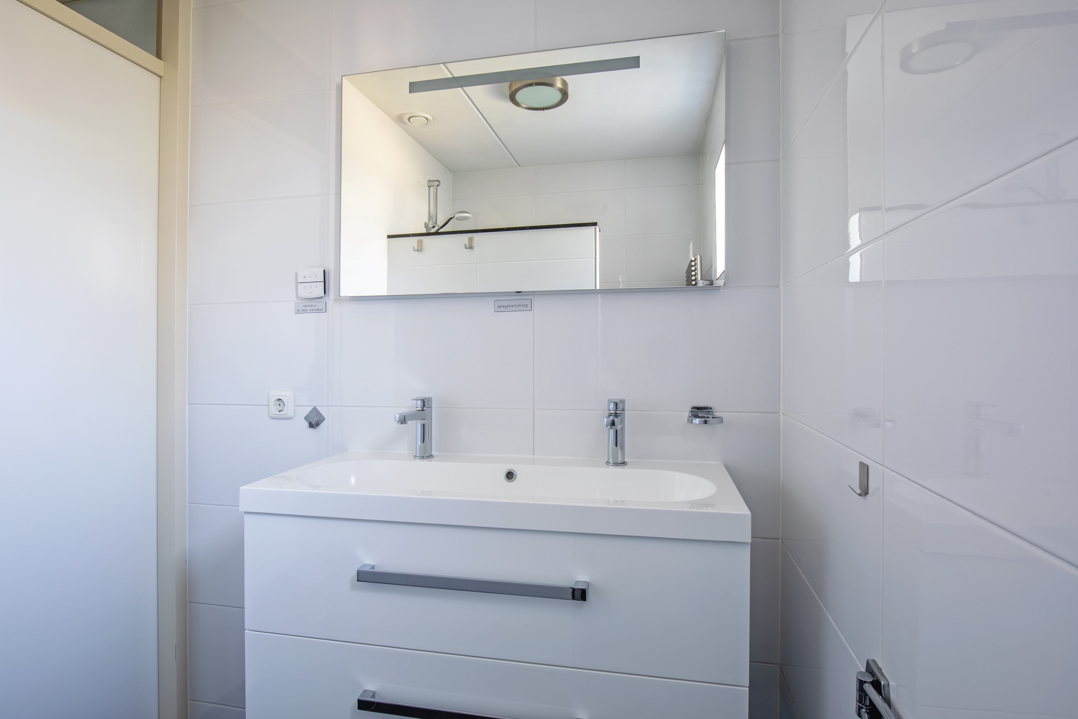 Op de eerste verdieping is een badkamer met douche, wastafel en toilet.