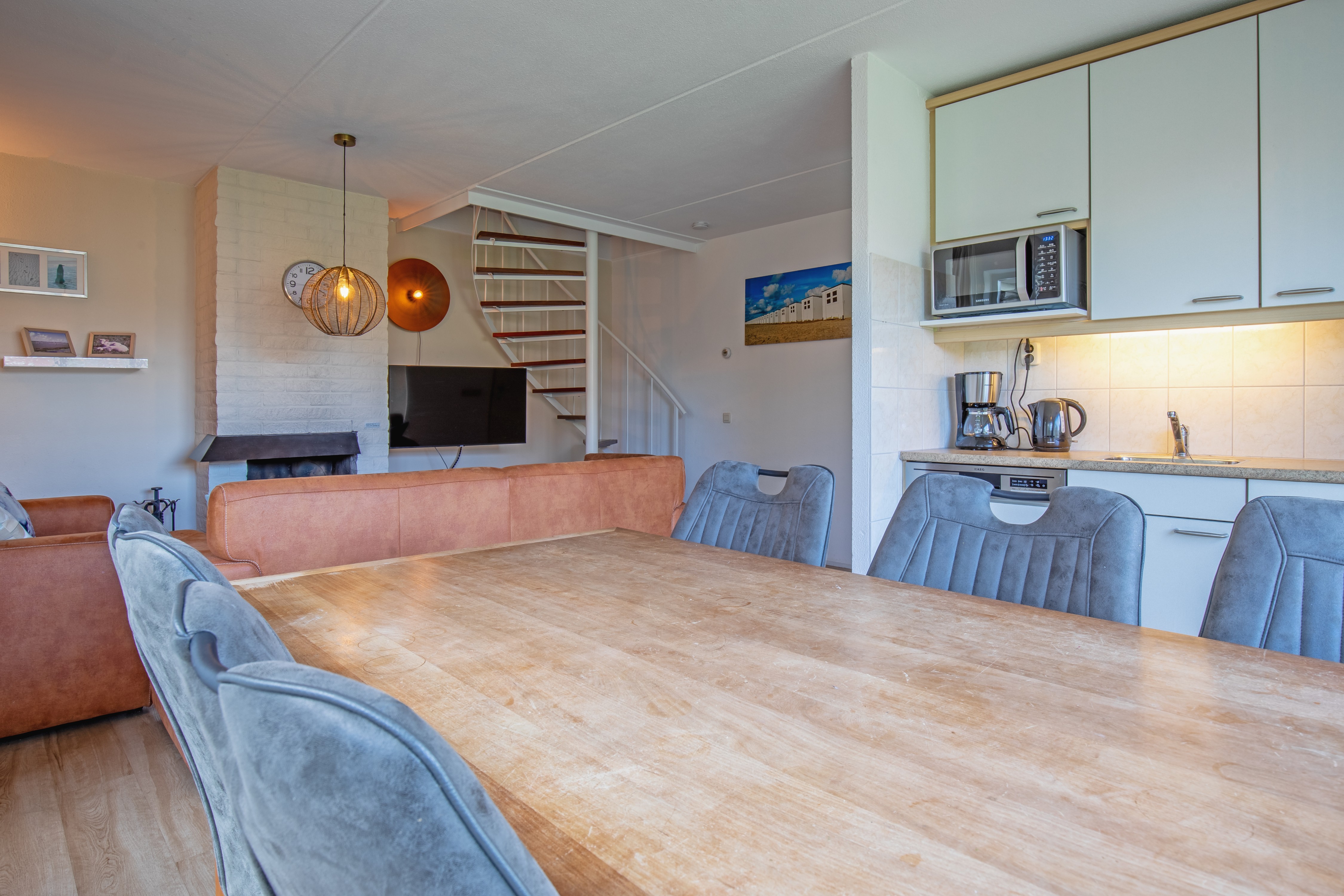 Deze geschakelde bungalow heeft een grote tuin met terras. De woonkamer biedt genoeg plaats voor het hele gezelschap en is voorzien van een zit- en eethoek, televisie en een open haard. De open keuken is o.a. voorzien van een vaatwasser en combi-magnetron. Er zijn 3 slaapkamers waarvan 1 op de begane grond. Er zijn twee badkamers aanwezig.