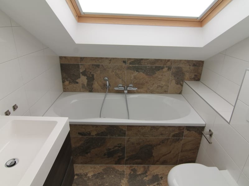 tweede badkamer met ligbad met douche, wastafel en toilet (eerste verdieping)
