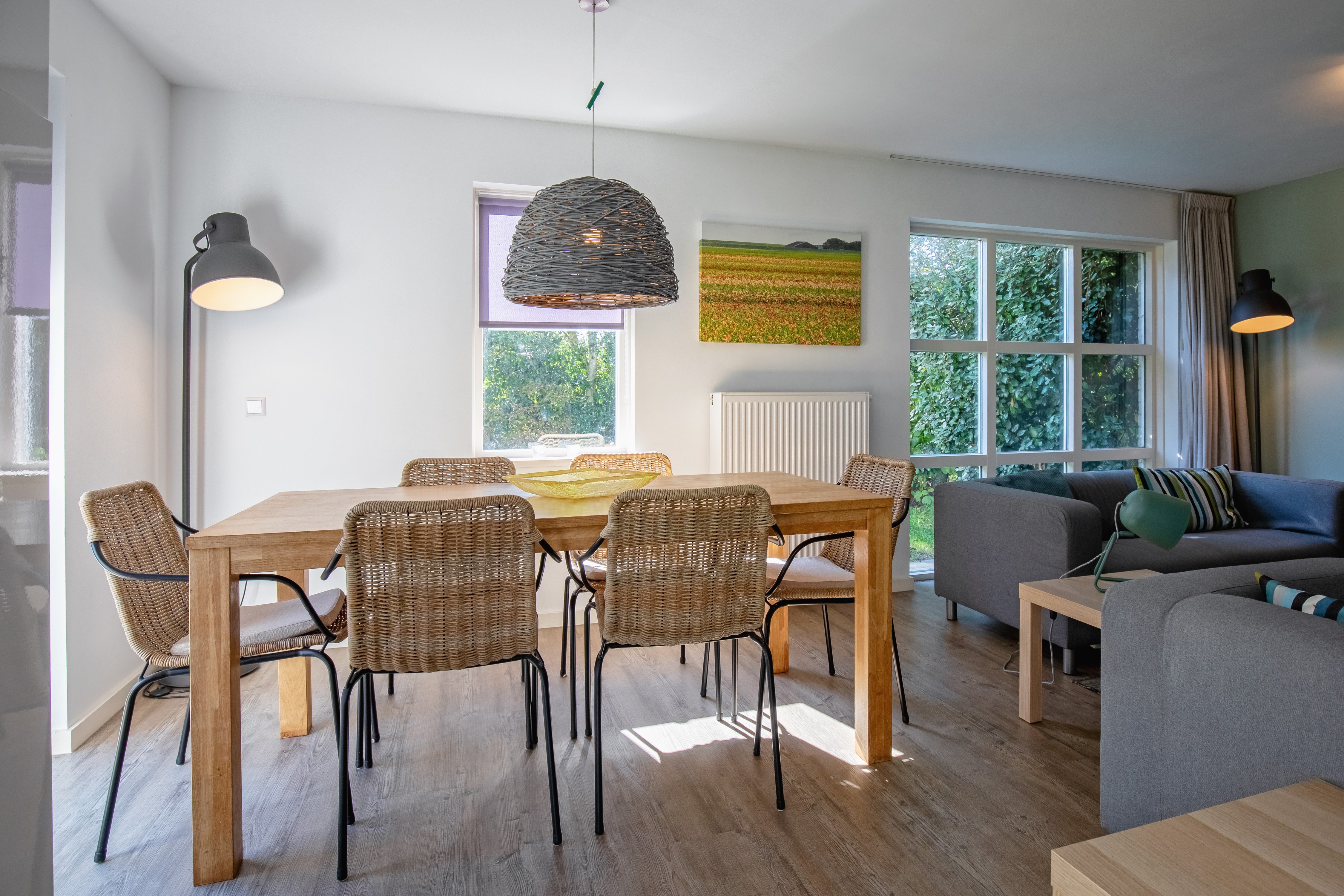 Deze geschakelde bungalow heeft een grote tuin met terras. De woonkamer biedt genoeg plaats voor het hele gezelschap en is voorzien van een zit- en eethoek, televisie en een openhaard. Er zijn 3 slaapkamers waarvan 1 op de begane grond. Er zijn twee badkamers aanwezig. De oppervlakte bedraagt ca. 90 m²