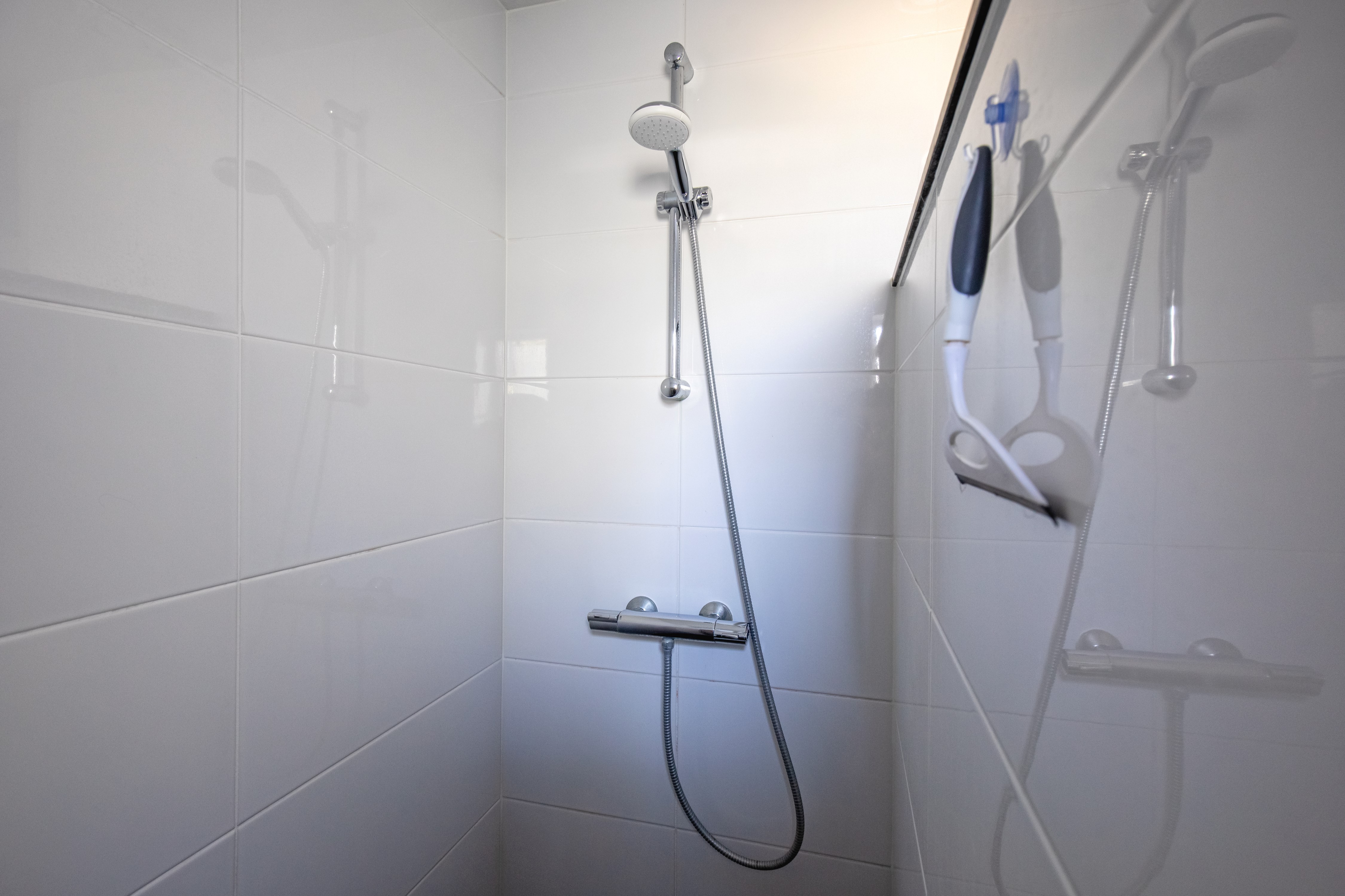 Op de eerste verdieping is een badkamer met douche, wastafel en toilet.